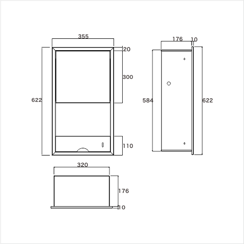 • 預埋尺寸: 320x176x584mm