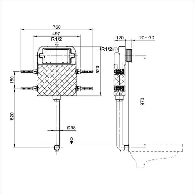 ◎暗藏式水箱設計,衛浴空間更簡潔,更美觀