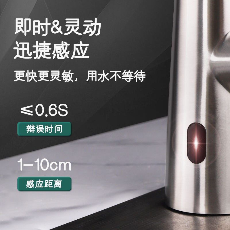 ◎靈動(Liteon)雙模感應技術,隻需0.7秒快速響應您的用水需求◎上感應揮手式長出水模式,接水、洗菜一氣嗬成◎下感應伸手即出,收手即停的短出水模式,短時洗手與用水更便捷